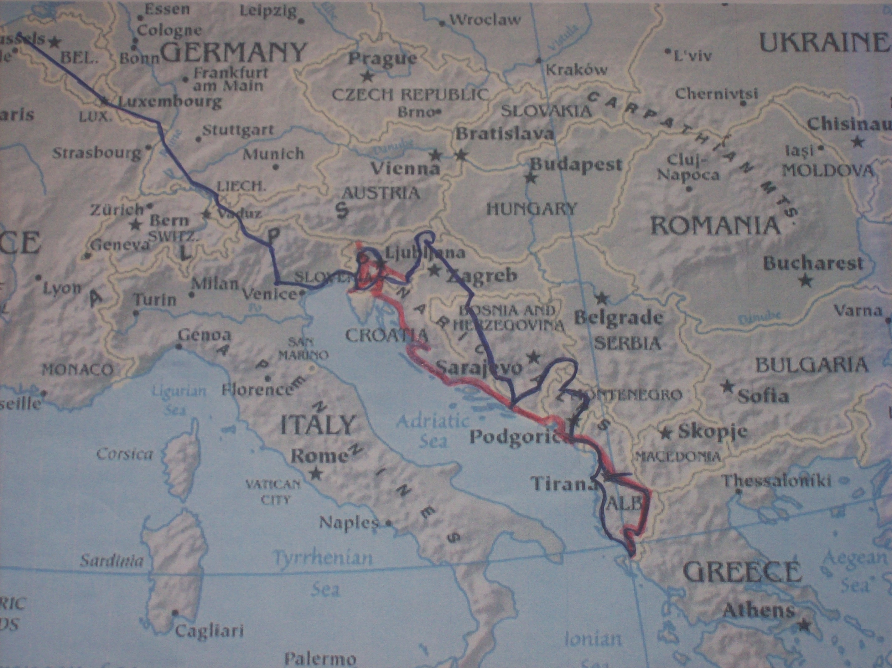 En in Sarande keren we ons kar. We overwogen eventjes om een mousaka in Griekenland (op 12 km) te gaan eten, dat klinkt wel sjiek voor in het verslag, maar we doen het toch maar niet! Dat geeft ook al geen gerommel aan de grens. Onze Gele kar wordt definitief 180 graden gedraaid. Griekenland laten we voor wat het is, we bollen zachtjes, zeer zachtjesaan terug richting Slovenie. Wellicht, als de plannen niet gewijzigd worden, zijn we dit jaar onder den Belgischen kerstboom te vinden!