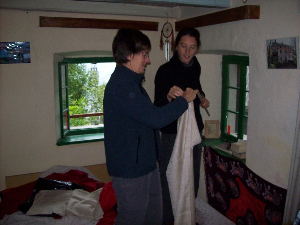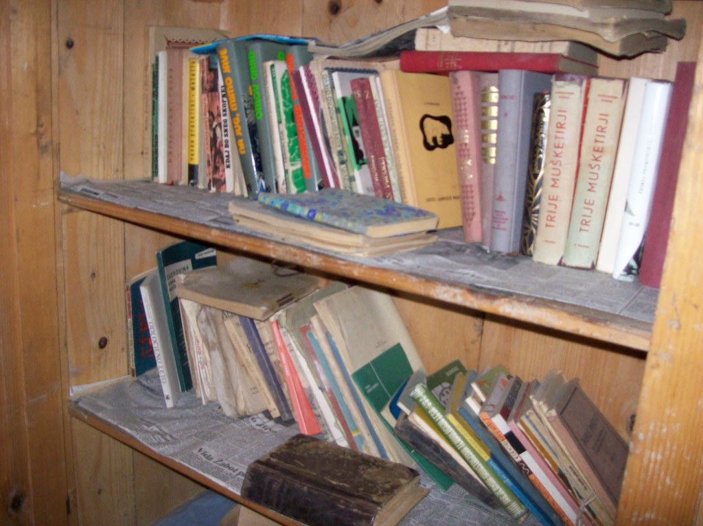 In het kleine kamertje op de eerste verdieping vinden we niet alleen krulspelden en parfum, maar ook een stoffige bibliotheek. Samen met Erik, onze buur, bekijk ik de boeken, tijdschriften, schoolschriftjes en stripverhalen. Deze kast bevat zowat de hele Sloveense geschiedenis! Tot WOI was Slovenië deel van het Oostenrijks Hongaarse Rijk. De boekenkast bewaart zelfs van die tijd boeken. Tussen WOI en WOII viel de streek onder streng Italiaans bewind. Sloveens spreken was verboden, dus van die periode enkel Italiaanse modeblaadjes en romans in de bib. Na WOII komt Tito op de proppen: Italianen buiten en alles Slaven in 1 groot communistisch Yoegoslavisch rijk. De boekenkast blijkt over de lopen van pro communistische lectuur. Één van de Klinkovs werd als partizanenstrijder beloond met een gesigneerd boek. Het openbreken van de gesloten Sloveneense greenzen in de jaren 80 vertaalt zich in de boekenkast in Dickens, Hemmingway en consoorten. De hele geschiedenis en ook welke positie de vorige generaties daarin innamen, zit allemaal opgeborgen in dat kleine kamertje op onze eerste verdieping!