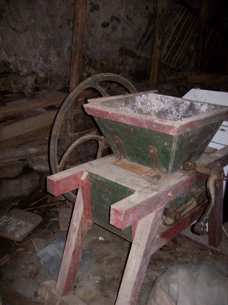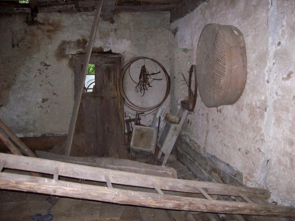 Dat het drie generaties boeren zijn die hier geploeterd en gezwoegd hebben, is al snel duidelijk. Overal in huis liggen plasiek zakjes met schroefjes, darmpkes, tandwielen “za traktor” (voor de traktor). Vóór de komst van die traktor was ‘ t hier nog harder labeur. In de stal vinden we zeisen, rieken, stukken van houten karren, zelfgemaakte houten ladders, gevlochten manden om hooi op de rug te zeulen, grote houten zeven, …