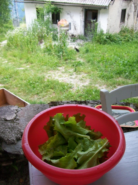 En tussen onze vier moestuinen door ziet het er op Borovnica zo uit: