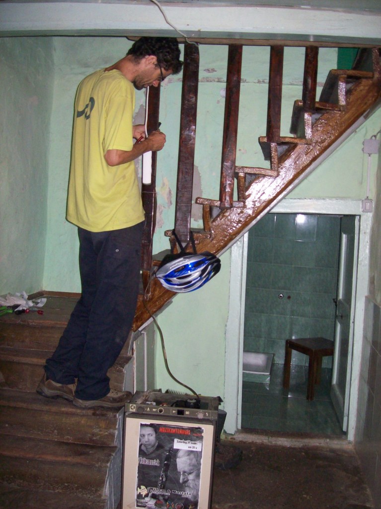 Het oude huis: charme, oude schatten, groot, … Maar ook: vochtplekken, een krakend dak en afschilferende muren! Onze renovatiecenten houden we voor “de stal”. Ondertussen maken we de beneden leefbaar voor onszelf en richten we de badkamer en living / slaapkamer in met de schatten des huizes!