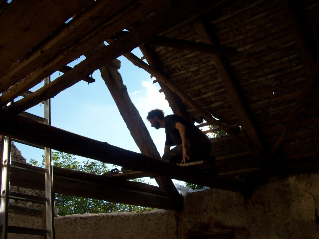 Echt typisch Sloveens is de droogschuur die al snel tot werkplaats werd omgetoverd.