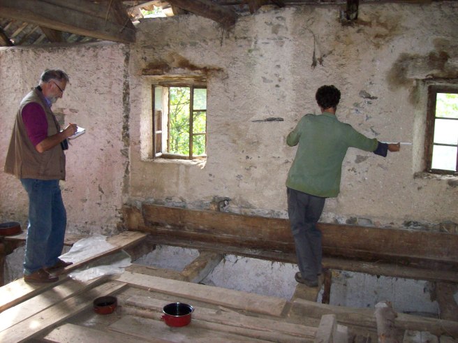 * bergmarmotten Freya en Filip keurden onze bergen goed! Ze kregen de electriciteit-primeur want in augustus legden we electriciteit in ’t oude huis.