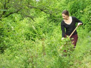 We teren niet alleen op moeder natuurs energie; we voegen er met veel plezier de onze eraan toe. De tuin was redelijk overwoekerd en snakte naar licht en lucht. Gewapend met zeis, riek en snoeischaar moet het lange gras en de klimplanten eraan geloven!