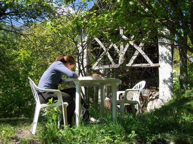 Tijdens en na de dakwerken gaan we opnieuw naar school. Tweemaal per week kruipen we samen met enkele Macedoniërs, Kosovaren en 1 Hollander terug in de schoolbanken. Opvallend is de gedrevenheid van iedereen om die moeilijke taal onder de knie te krijgen (slecht 2/15 valt af). Die gedrevenheid toont zich bij de ex-Yoegoslaven in het enthousiast nazeggen van de leerkracht. De Europeanen doen er enkele weken over om hun schroom te laten varen en ook vol overgave de werkwoorden mee op te dreunen. Zoals elke taalles, is ook deze een vrouwenaangelegenheid. Met dit verschil dat de fulltime moeders vaak hun kinderen meenemen naar de les.