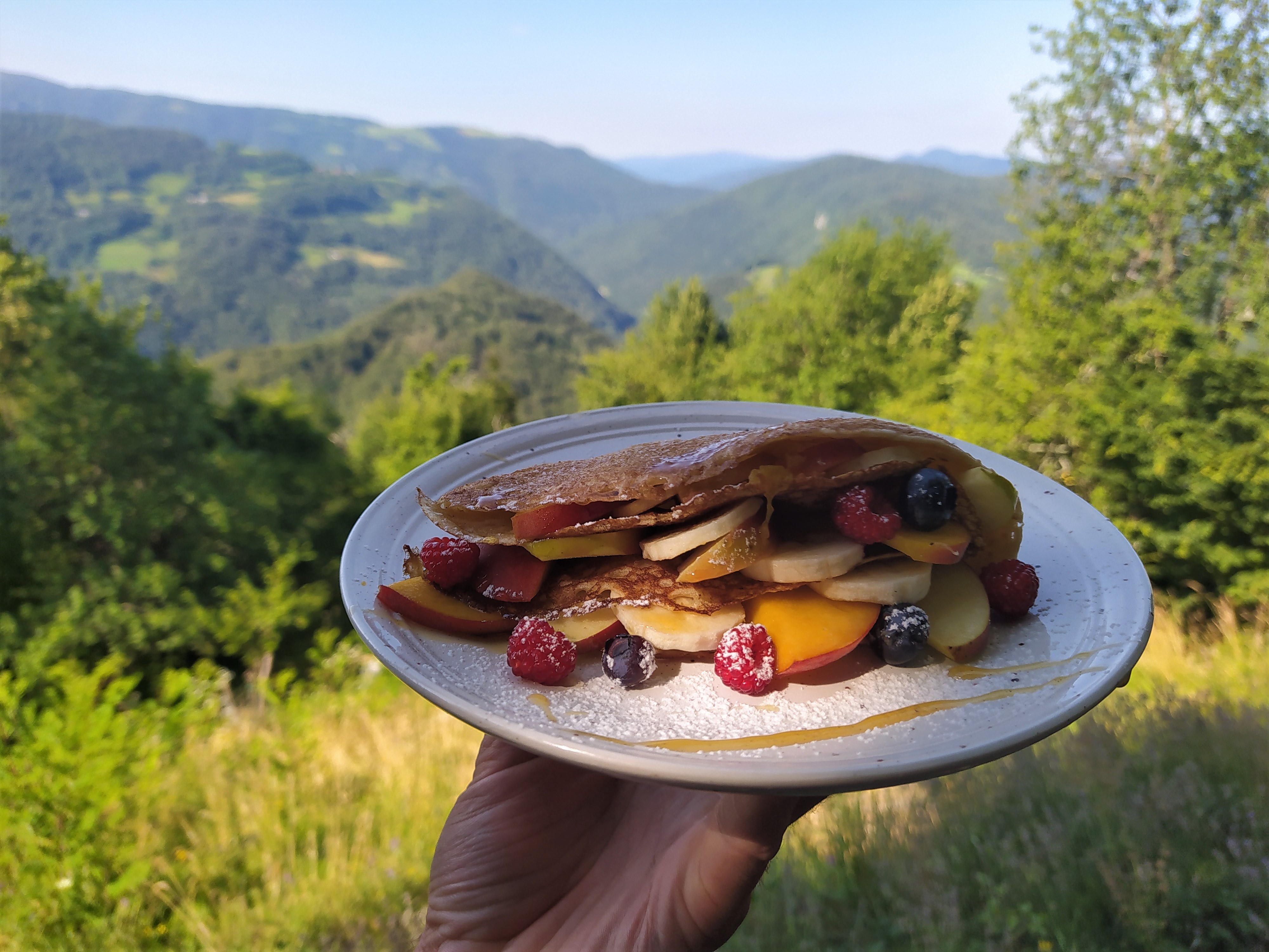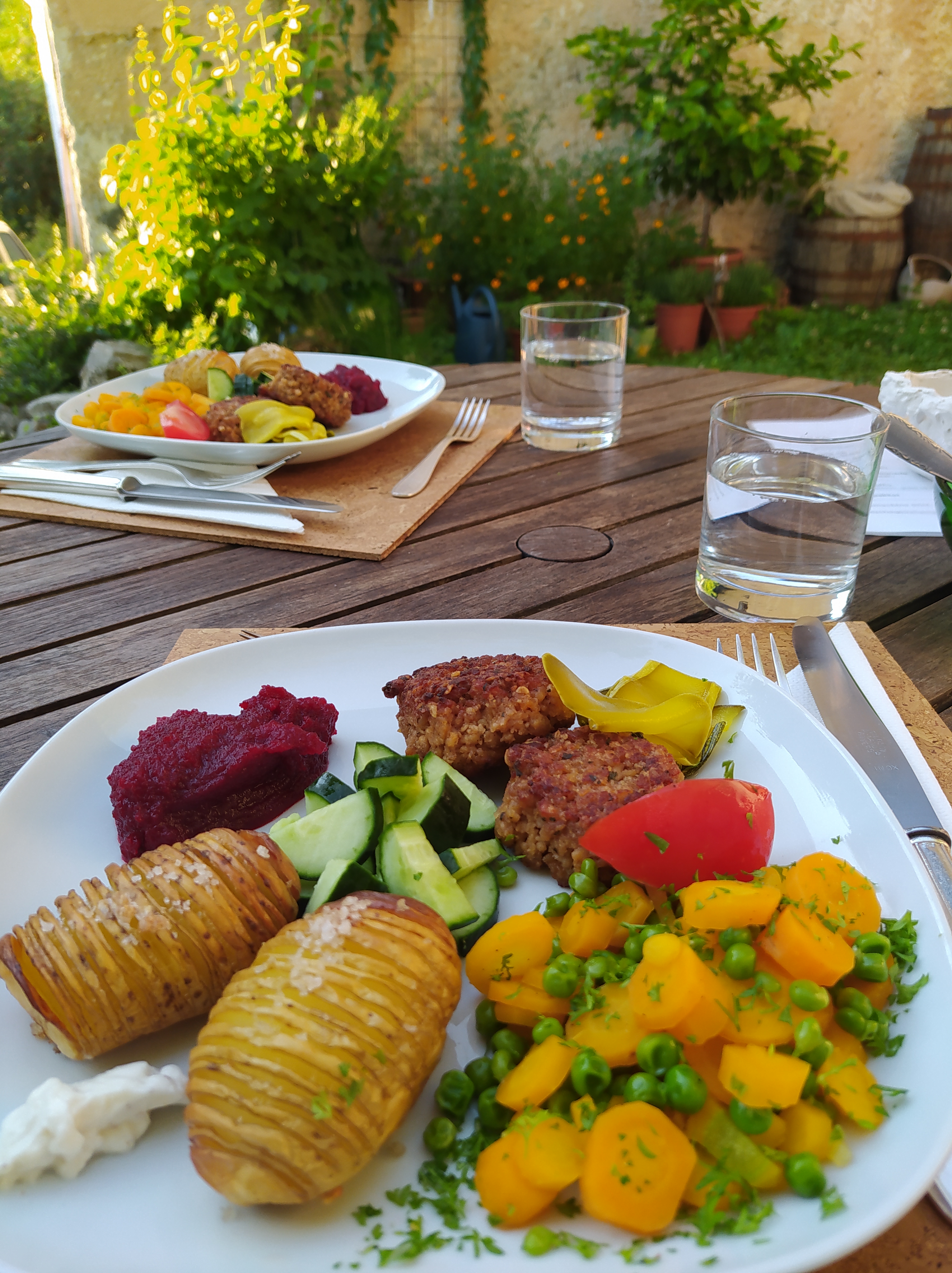 Op 4 juli mochten Belgen dan ein-de-lijk de Sloveense grens over. Fijn om gasten in het Nederlands te verwelkomen en hen wegwijs te maken in onze streek. Het seizoen, wijzelf en ook onze moestuin kwamen op dreef. Els ging ’s morgens de tuin in om haar mandje met groenten en bessen te vullen en kon ein-de-lijk voor gasten koken.