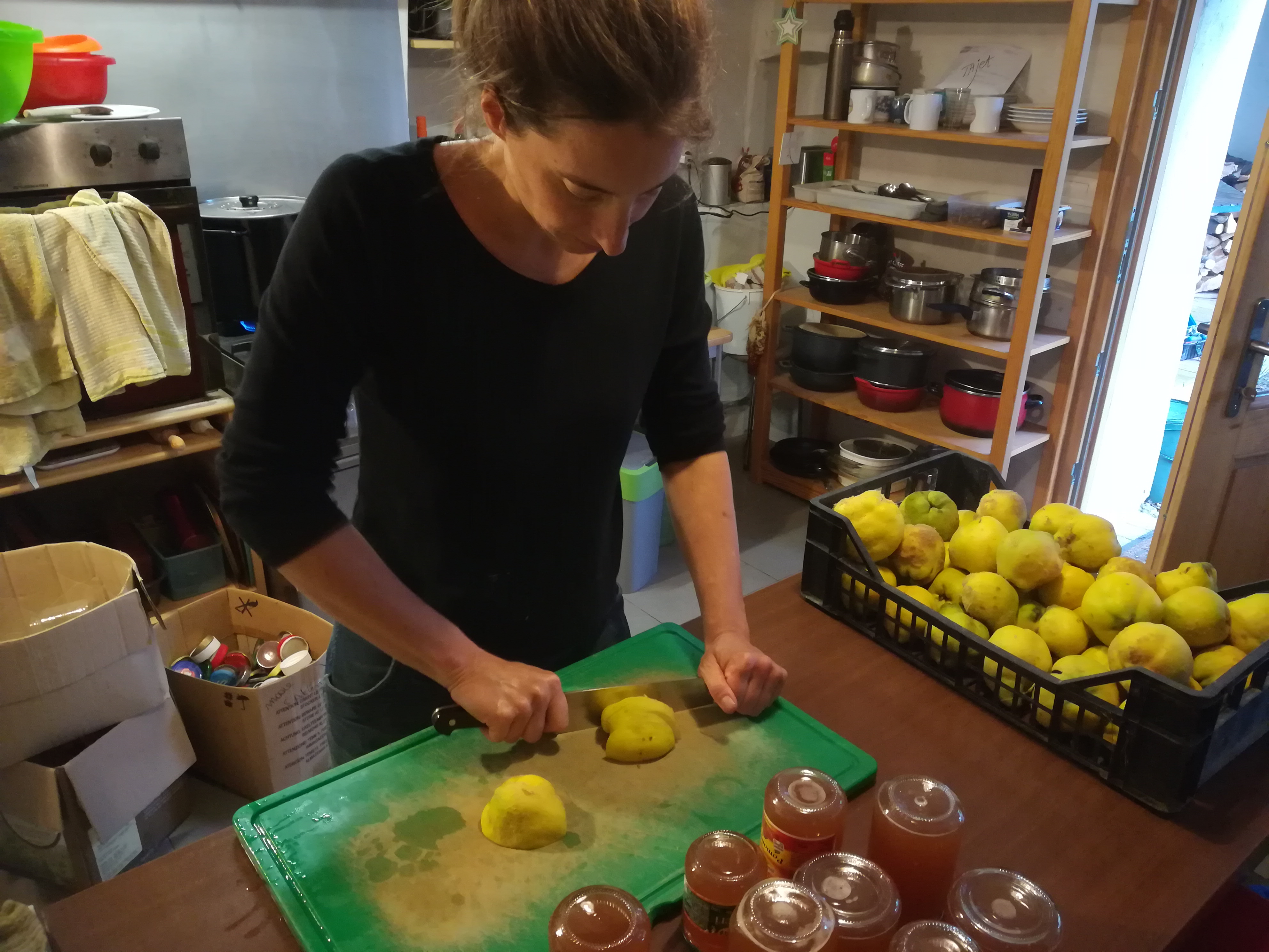 De zot-veel-kwee uit de tuin werd verwerkt. Els maakte naar goeie gewoonte gelei en appemoes en droogde stukjes appel voor in de thee. Omdat er dit jaar zóveel kwee was, ging ze op zoek naar een nieuw recept. Momenteel staat er 2 liter likeur te rijpen!