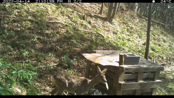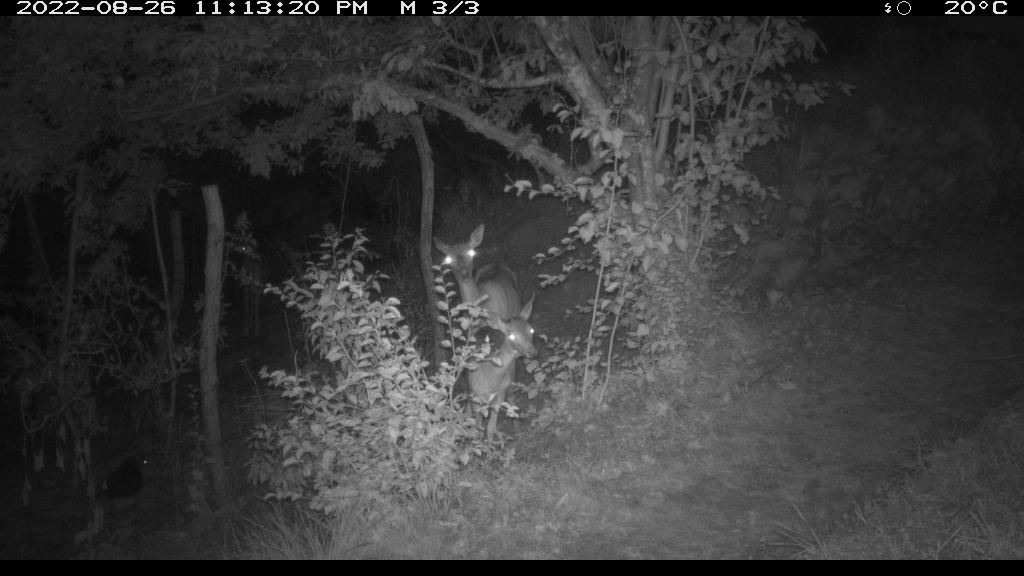 Ook de boscamera draaide op volle toeren. Toen we merkten dat onze pruimenboom aangegeten werd, installeerden we de camera. Zo kwamen we er al snel achter wie van de bladeren knabbelde. Ook overdag gaven ze soms acte de présence in onze tuin.