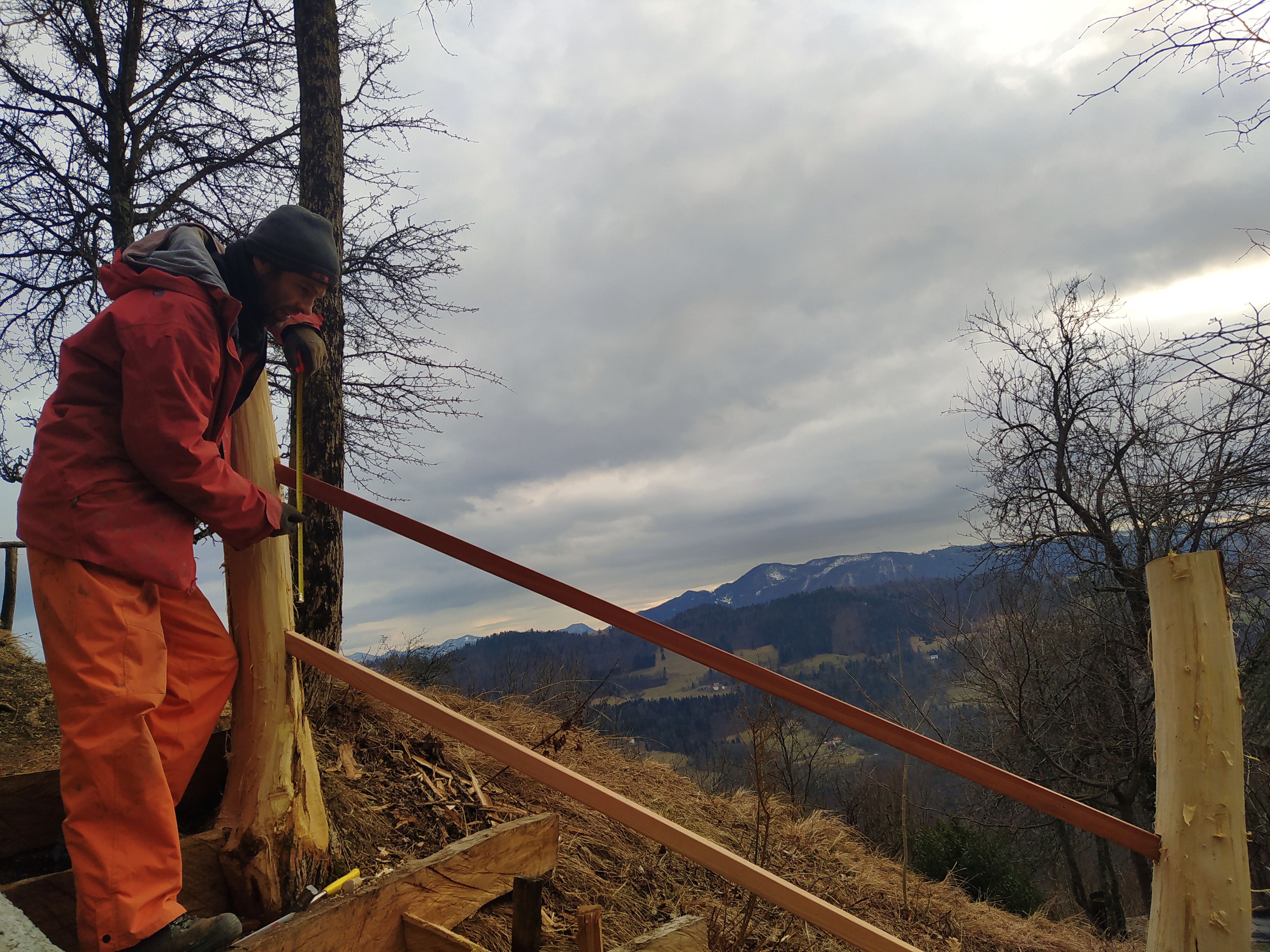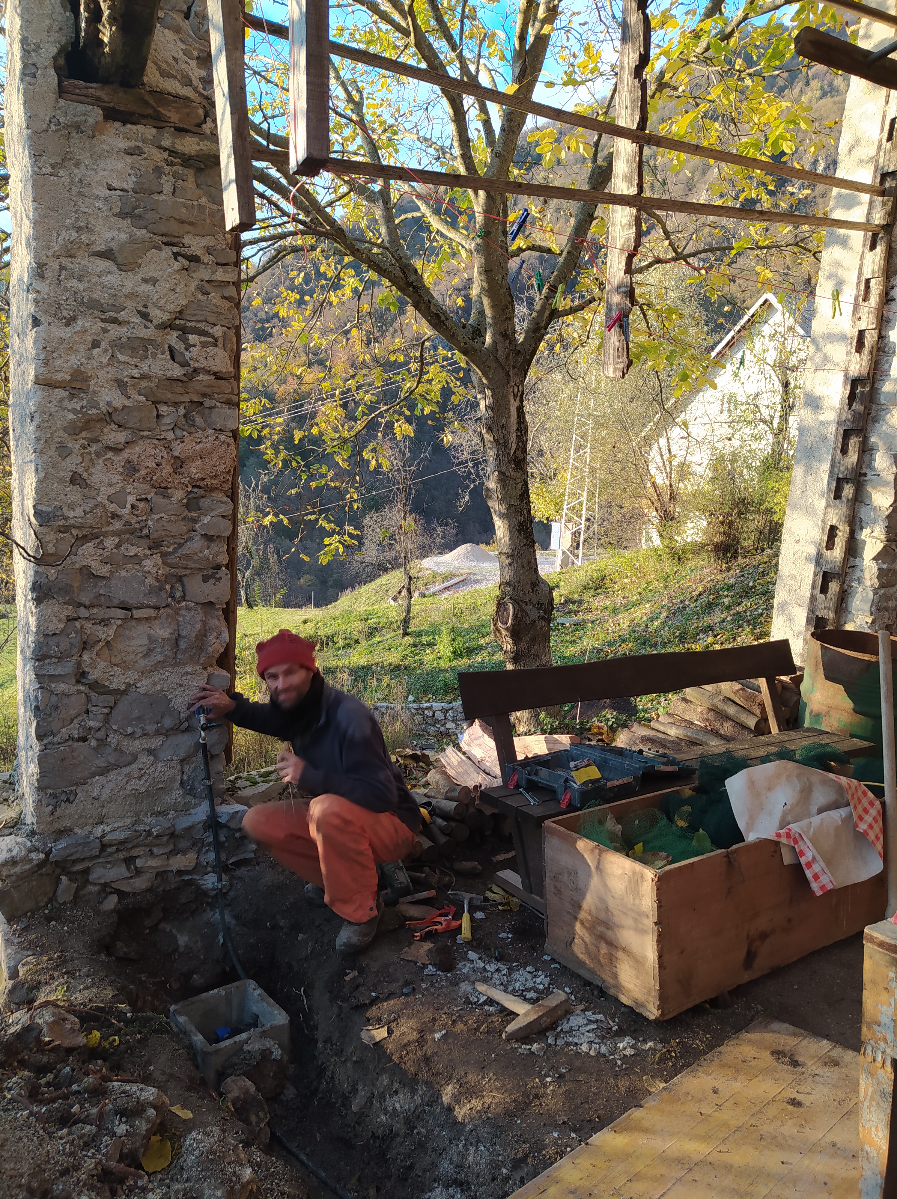 Van de Griekse zomerzon tuimelden we de Sloveense herfstkleuren in. Naar goeie gewoonte gingen we ook deze herfst aan het klussen. Melanie en Raiko uit Estland hielpen ons met enkele buitenklussen. Sleuven uithakken, putten graven, hout klieven of beton draaien, deze twee vrijwilligers bleken gouden handen en spieren te hebben.