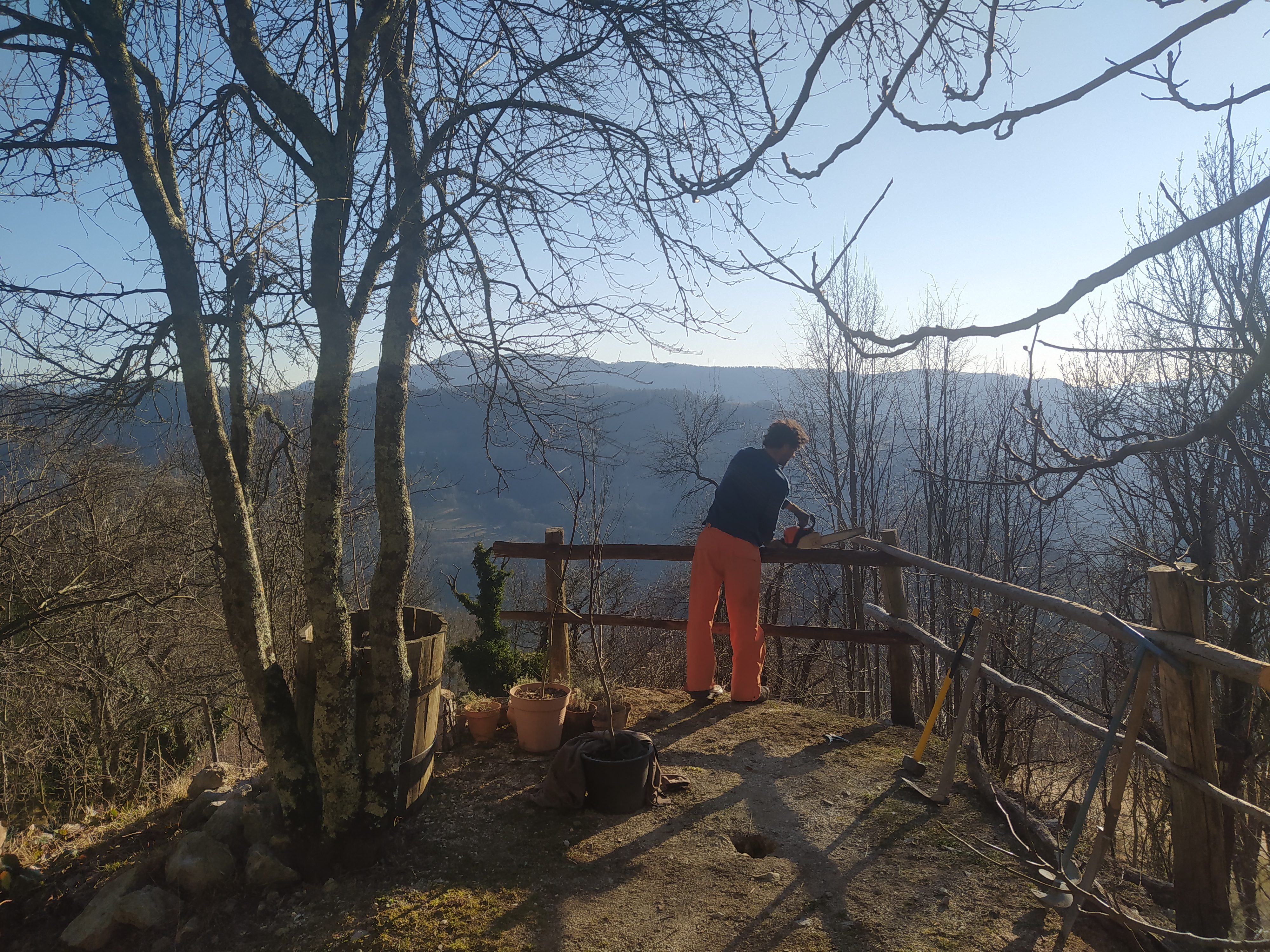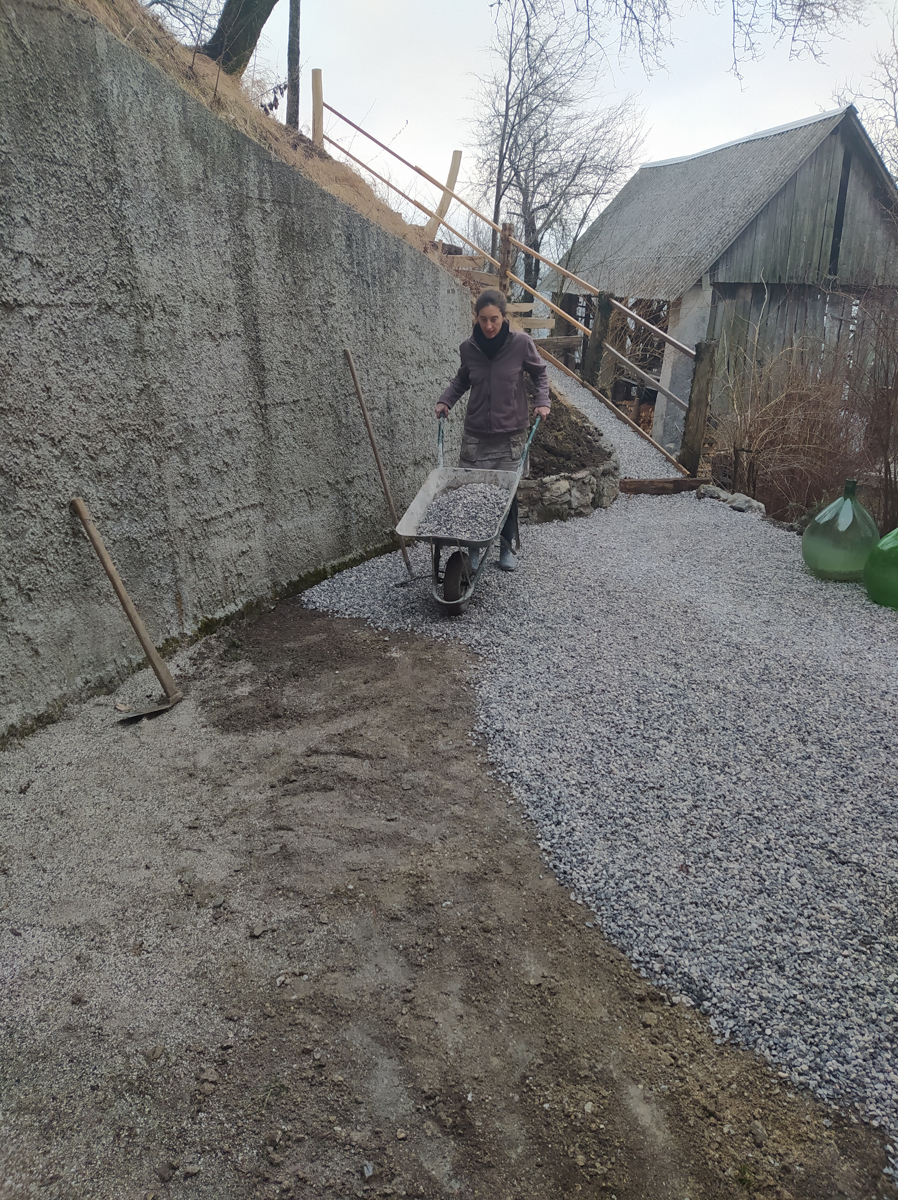 Als we geen gasten ontvingen, deden we klussen. En die deden we niet alleen. De website van “Workaway” is een platform waar gastgezinnen en vrijwilligers elkaar vinden. Als wij zwaar hak-, sleep- of graafwerk hebben dat we niet (meer) met ons twee kunnen doen, plaatsen we een oproepje op de “Workaway”-website. Jongeren die op reis zijn of nood hebben aan een adempauze kunnen bij ons komen werken in ruil voor kost & inwoon. Samen met wat vrijwilligers, hun spierballen en soepele rug pakten we deze winter en lente enkele klussen aan.