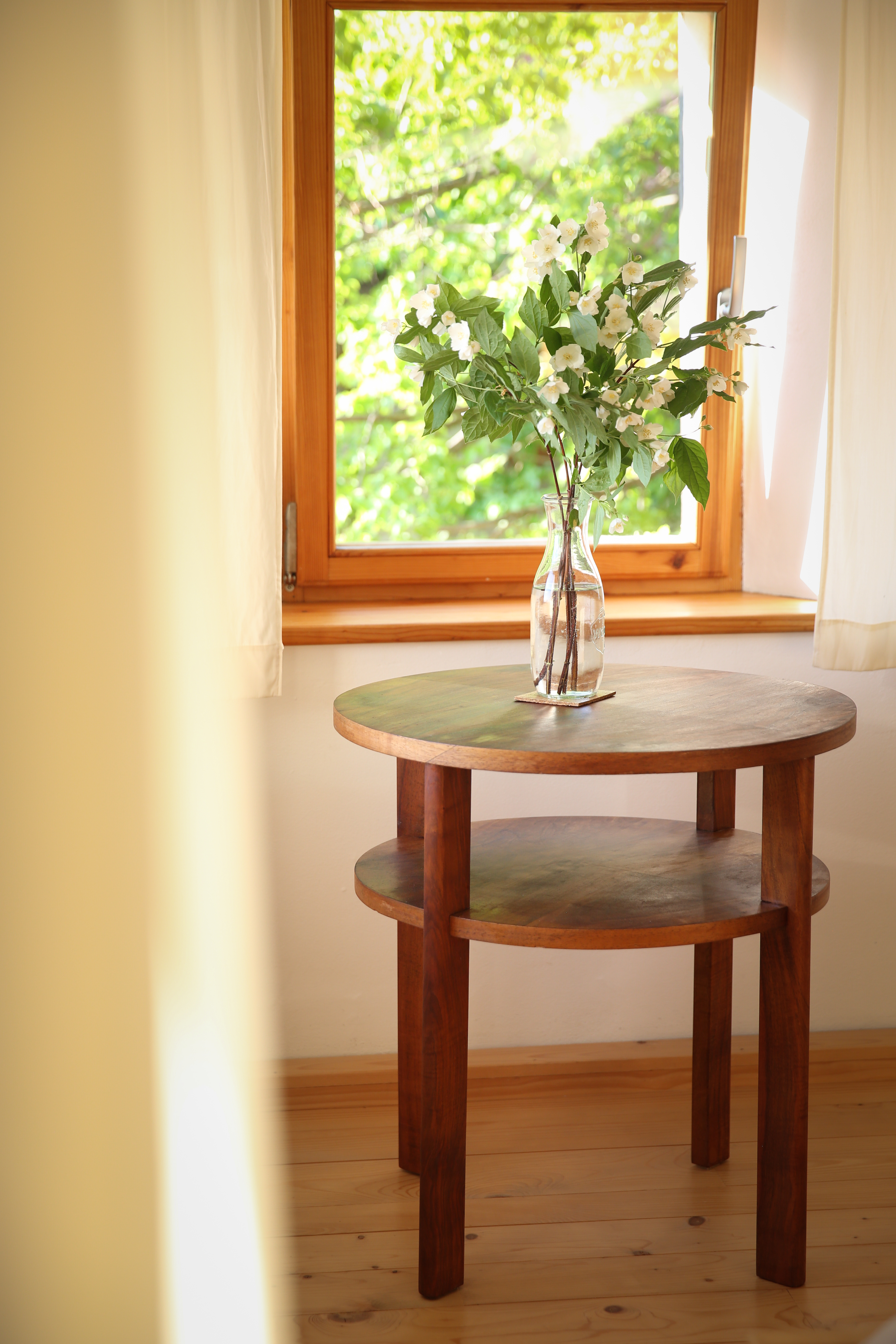 oude meubels van de gastenkamers opnieuw in de olie zetten,