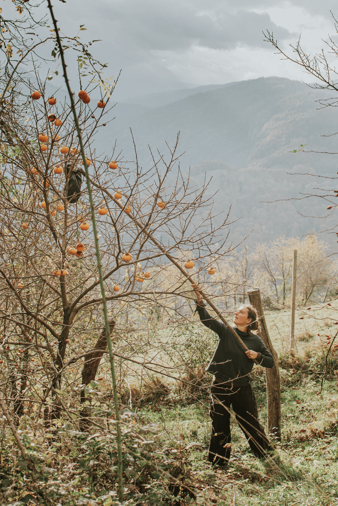 Els zorgde ervoor dat de moestuin proper aan haar winterslaap kon beginnen. Kruiden drogen, rozebottel plukken, serre opkuisen. Vlak vóór de vorst oogstte ze alle kaki’s. Toen we het huis kochten, vonden we een fruitplukker. Handig gerief om fruit uit hoge fruitbomen te halen! Beetje gelijk eendjes vissen, maar dan met kaki’s.