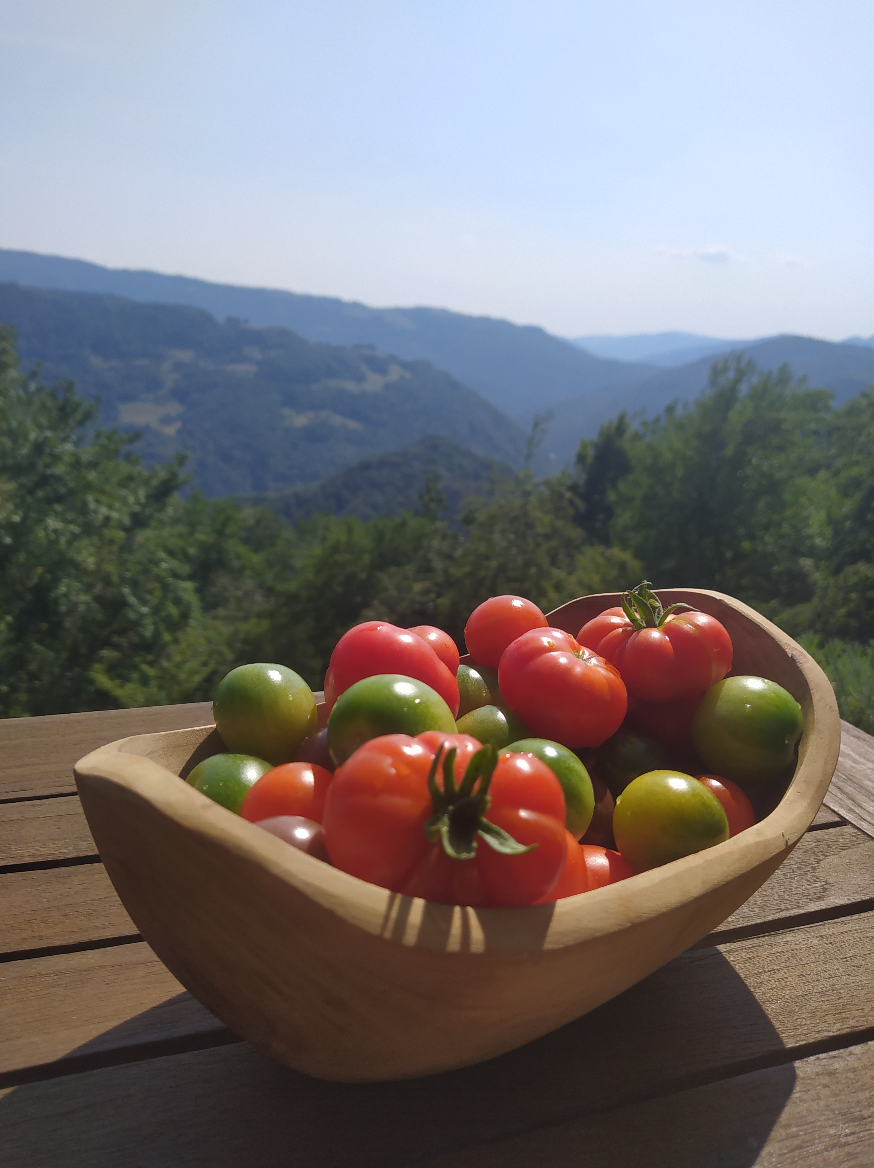 Dankzij de regenwaterput hadden we het hele seizoen door water. Hoewel we eind augustus zuiniger moesten omspringen met water voor de moestuin, konden we er toch regelmatig oogsten. Els voorzag de gastenkamers, ontbijttafel en avondmaal zoveel mogelijk van moois & lekkers uit de tuin.