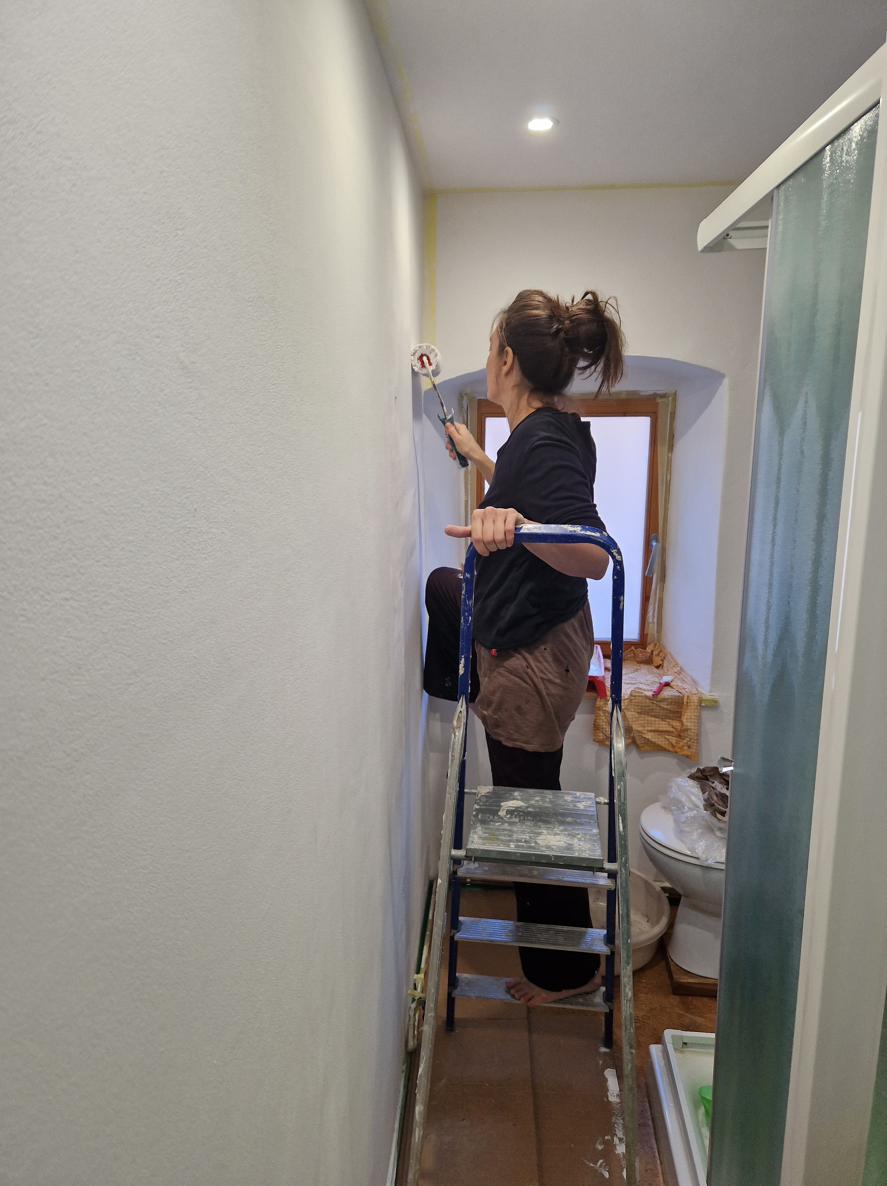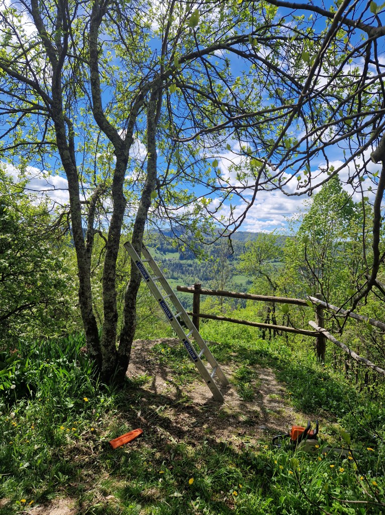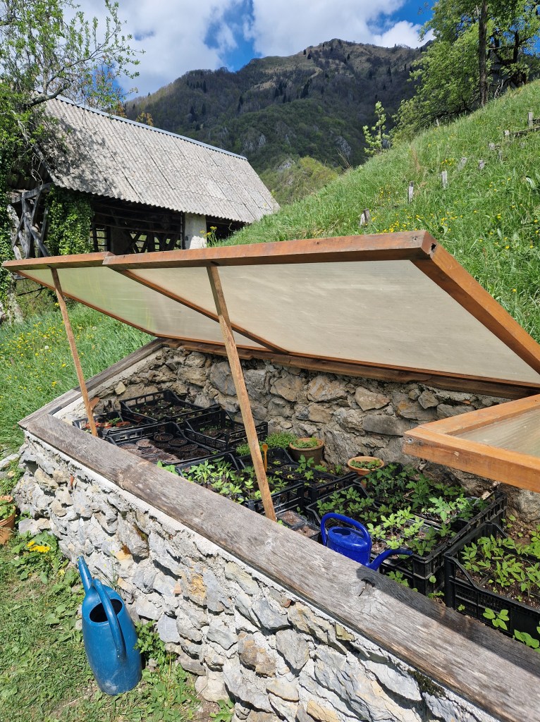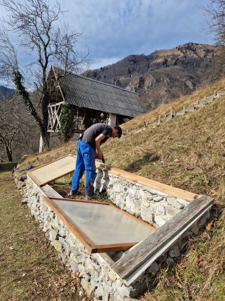 Ten eerste was er het opknappen van alles wat zijn oren laat hangen. We schilderden de badkamer en luiken van de ramen, herstelden de koude kas en knapten de ontbijtplek aan de vijgenboom op. De man isoleerde het plafond van zijn mancave. Kwestie dat tijdens de winterse kou ook hij zijn oren niet laat hangen.