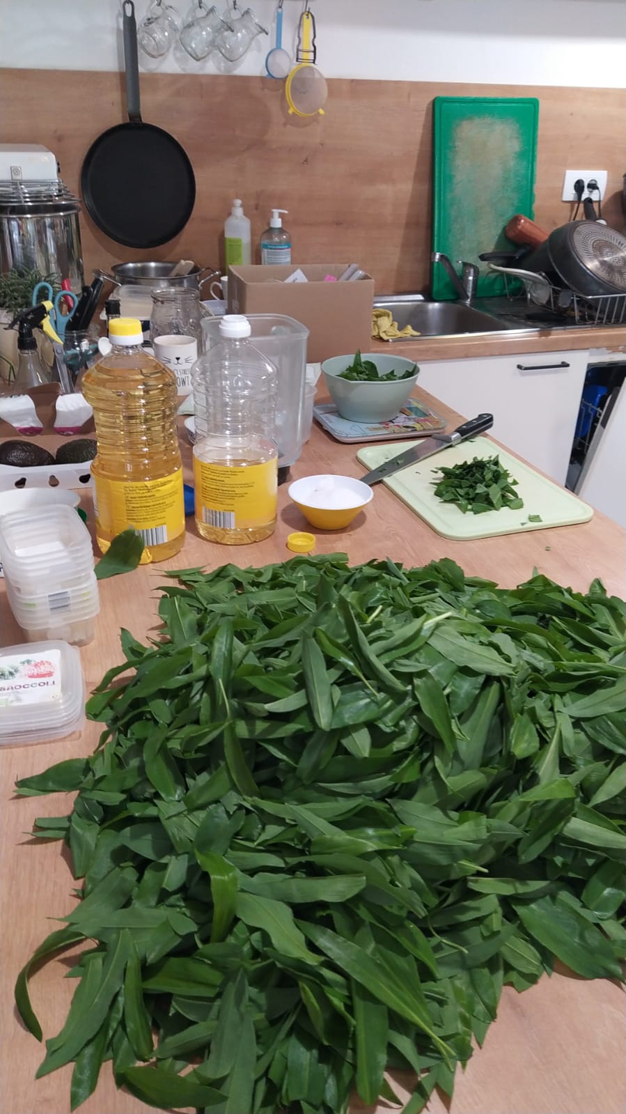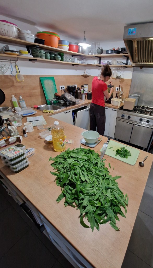 De lente start als elk jaar met een pittige uitdaging: 4 grote zakken vullen met daslookblaadjes. Daslook luidt de lente in, kleurt als eerste het bos groen en heeft een pittige looksmaak. Wij duiken het bos in voor een paar uur en vullen de zakken. Els verwerkt de blaadjes tot pesto, schuift de doosjes in de diepvries en kan de gasten het hele jaar door deze heerlijke pesto serveren.