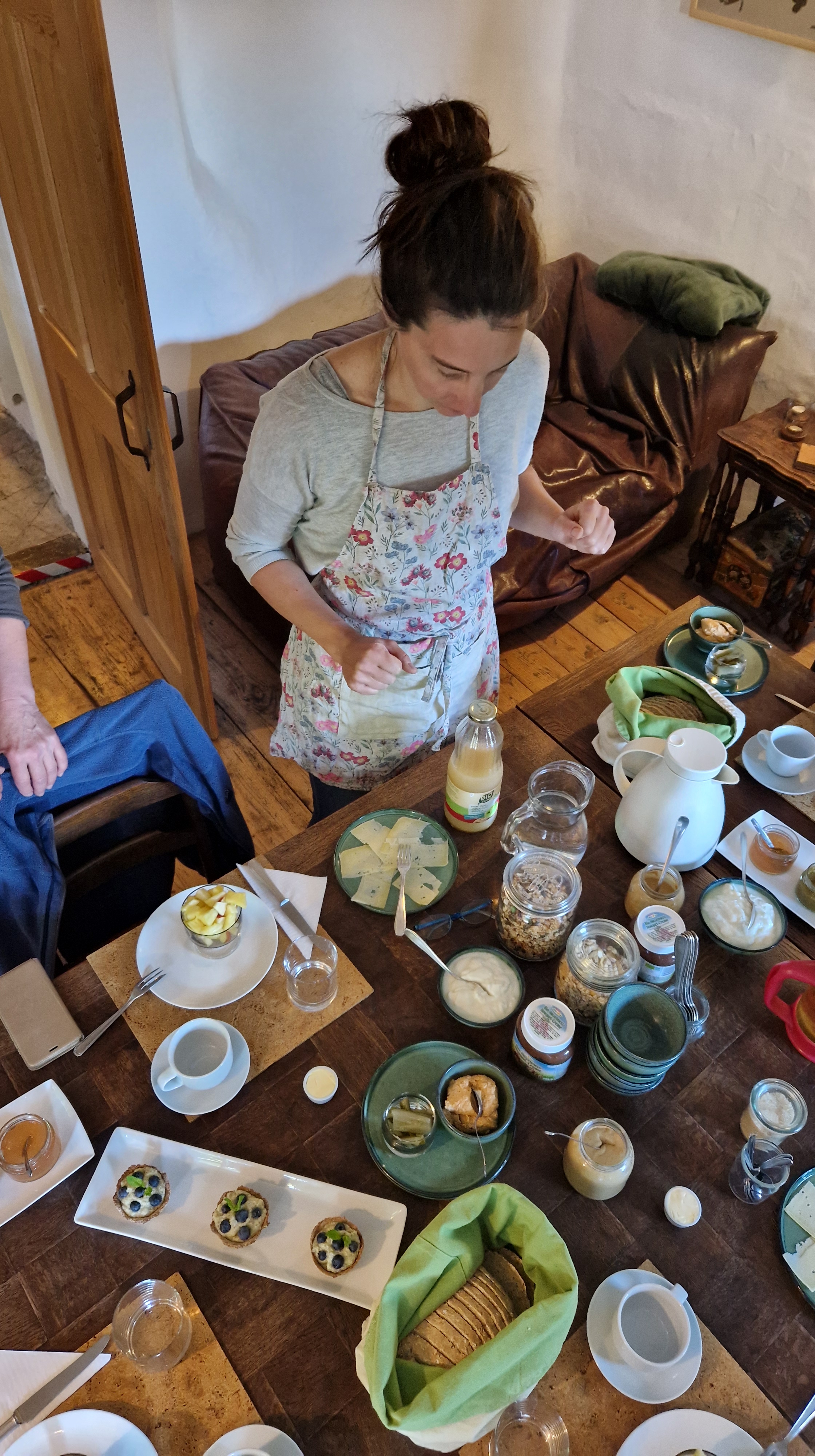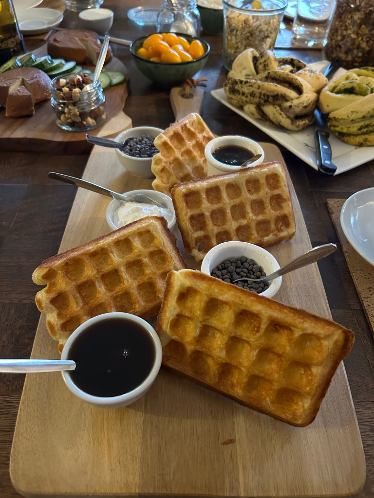 Ook in de keuken werden nieuwe uitdagingen aangegaan. Omdat het koken voor gasten vlot verloopt, is het fijn om wat nieuwe gerechten op het menu te zetten. In de lente oefende Els het bakken van verse wafels en werden ze geserveerd op haar favoriete ontbijttafel, de paastafel. Op Pasen leeft ze zich volledig uit met allerlei huisgemaakte hartige en zoete hapjes. Zie die wafels blinken op de ontbijttafel!