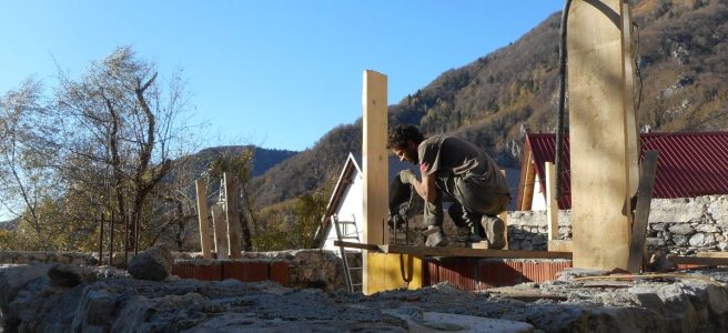 De voorbije herfst begonnen we aan fase 1 van ons PlatDakProject. Het was zwaar werk en de winter kwam af & toe pesterig over onze schouder meekijken (beton en vorst dat gaat niet samen). Maar we geraakten al snel in onze “zware-klussen-drive”: plannen tot in detail uitwerken, extra spierbundels optrommelen, machines inschakelen, een scheut van andermans vakkennis toevoegen. En aan de slag: