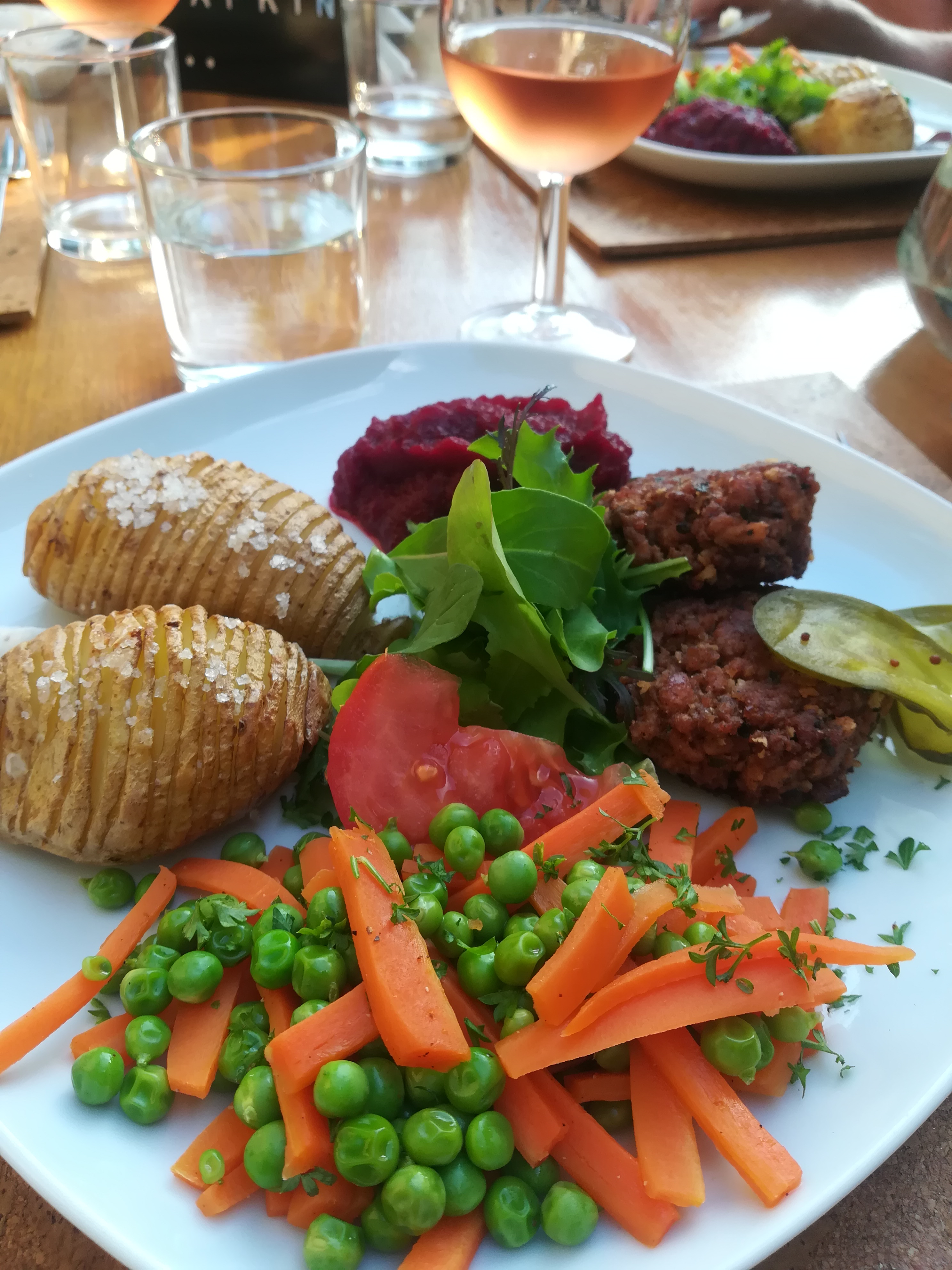 We gebruiken geen vlees of vis in onze keuken. Omdat de meeste van onze gasten geen vegetariërs zijn, zorgen we voor toegankelijke & herkenbare gerechten. Lekker, vers, gezond en huisgemaakt. Sommige groenten, bessen en kruiden komen uit eigen ecologische moestuin!